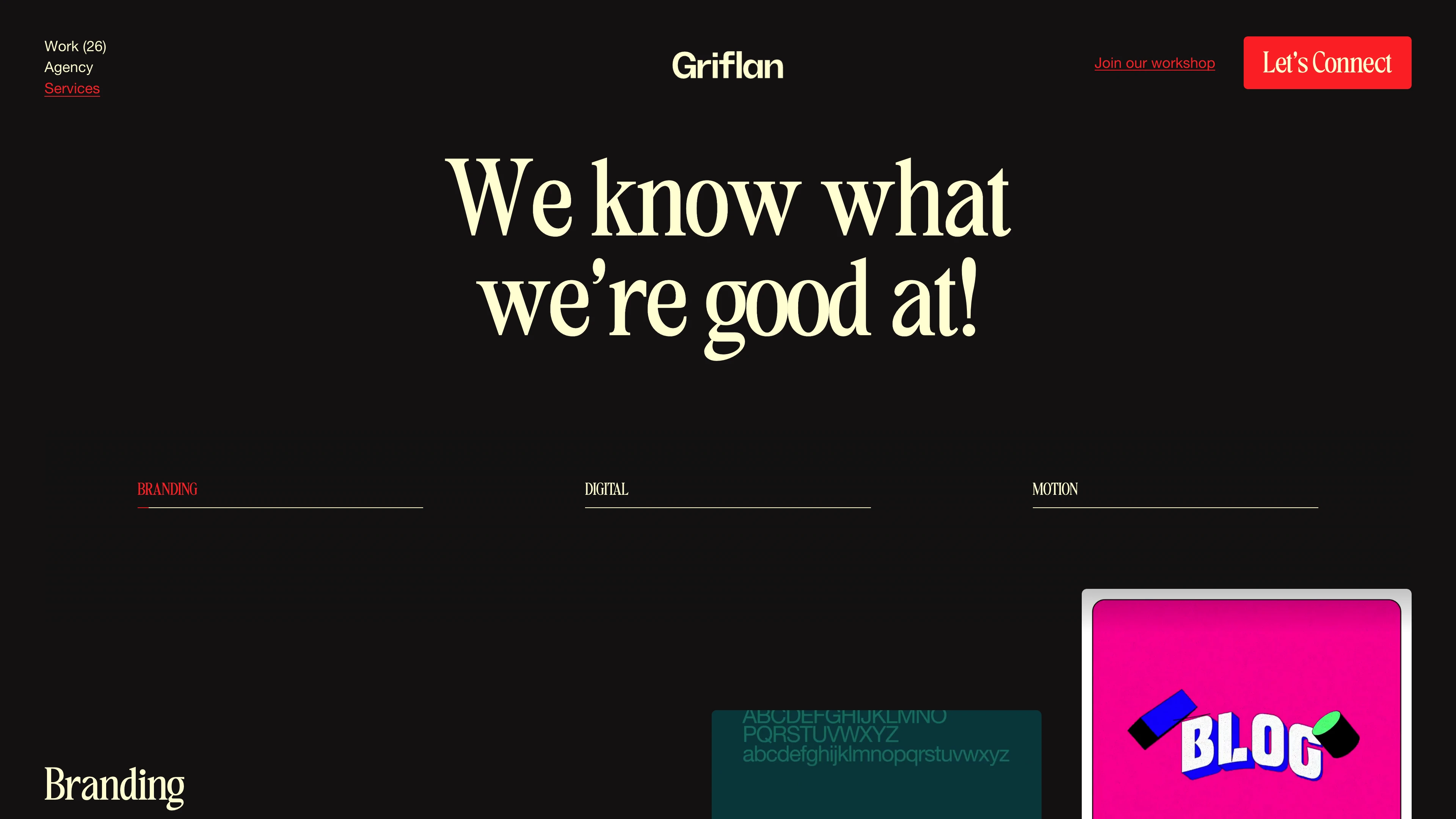 Griflan is a creative agency crafting unforgettable brands and digital experiences through strategy, storytelling, and design built to move people.