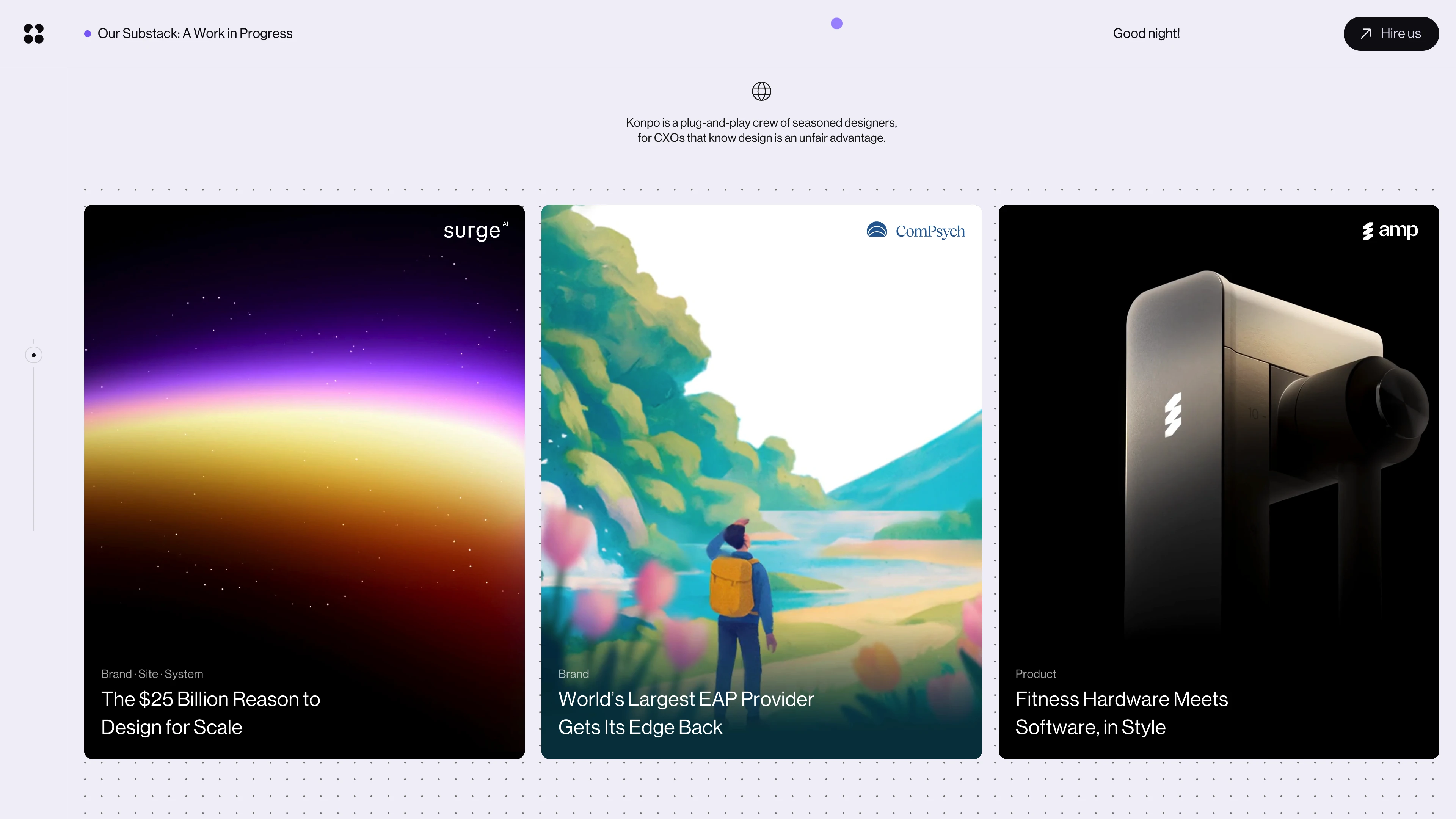 Full stack design studio. Konpo is a plug-and-play crew of seasoned designers, for CXOs that know design is an unfair advantage.