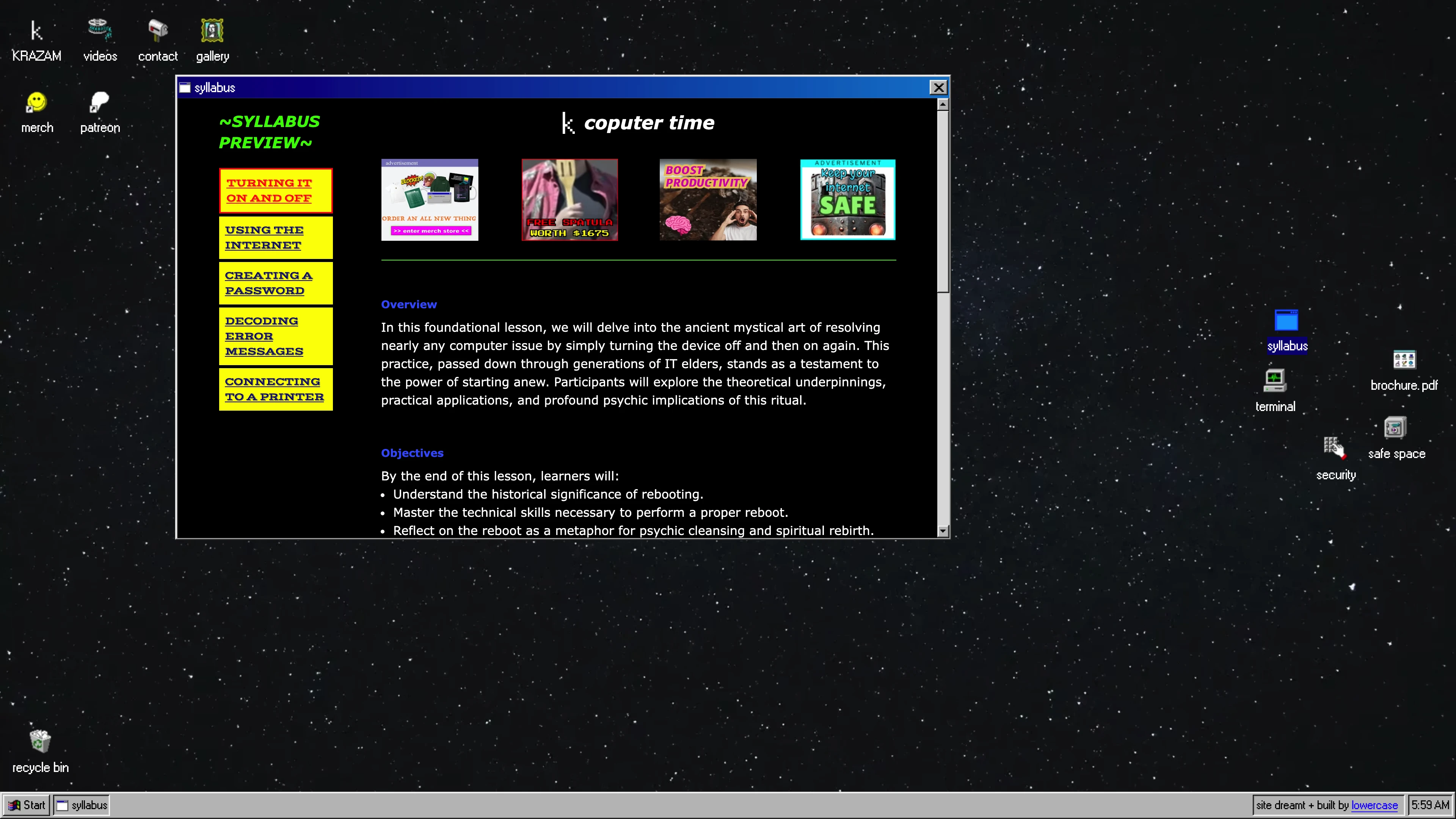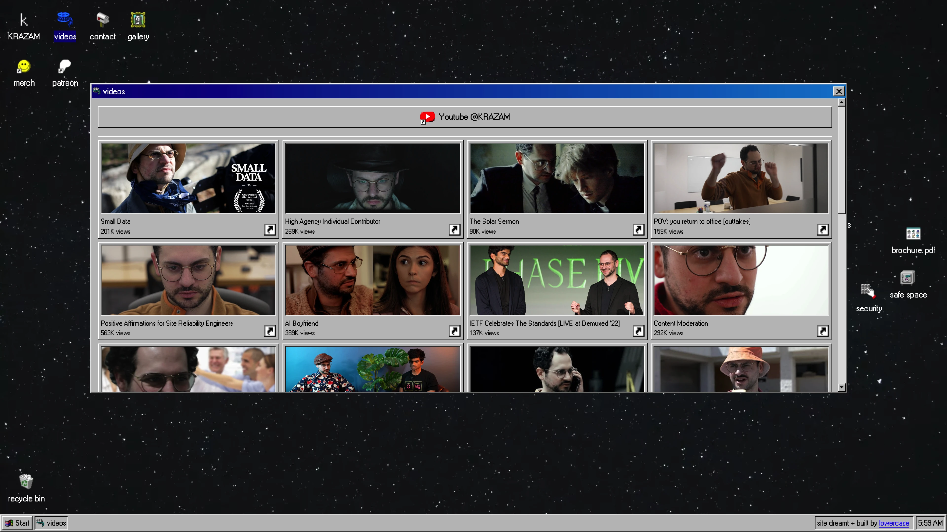 KRAZAM is a provider of internet video digital solutions. We offer free existential consulting for developers via our YouTube platform, as well as bespoke corporate entertainment packages for customers with sufficient budgets.
