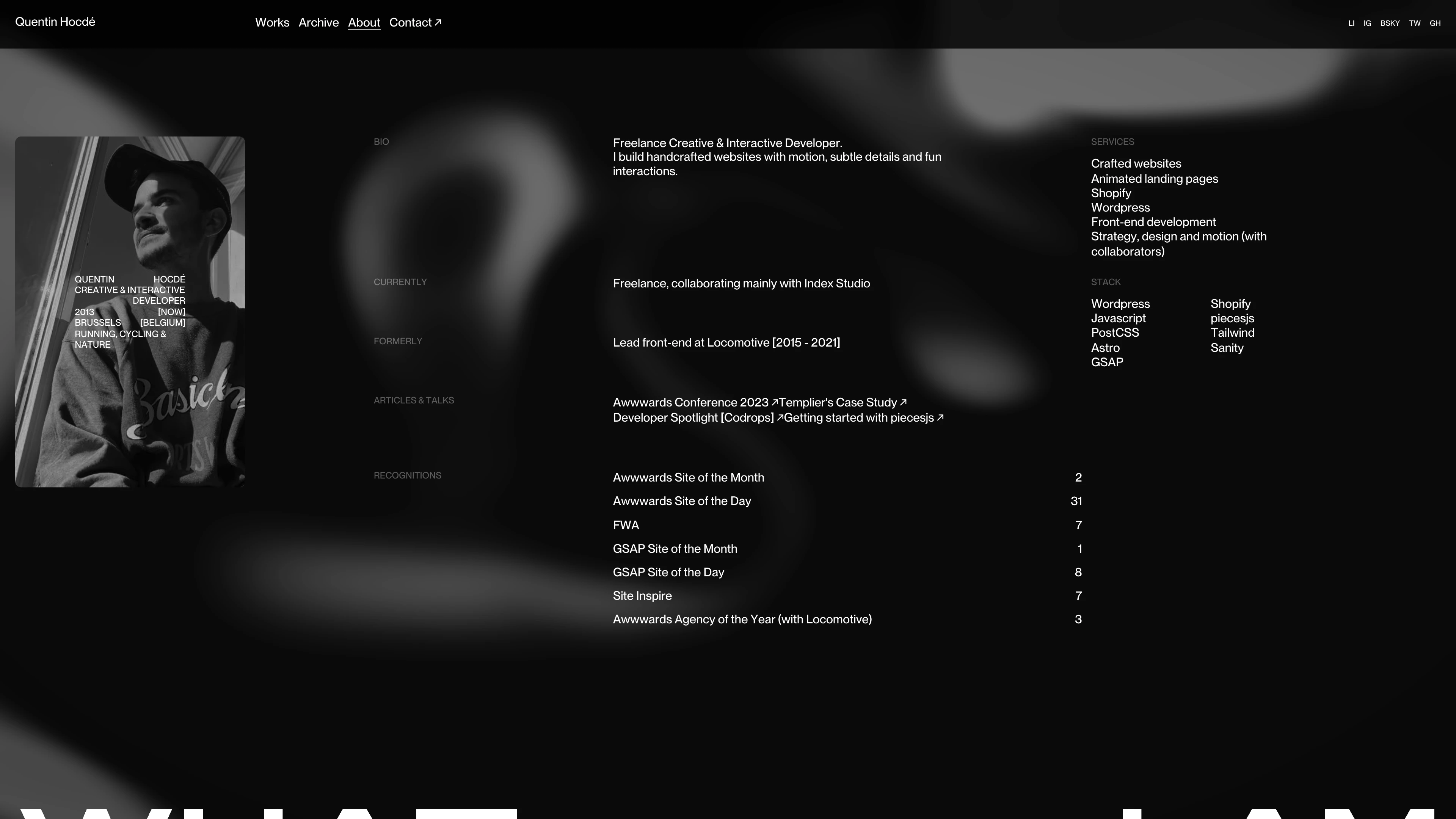 Freelance Creative & Interactive Developer. I build handcrafted websites with motion, subtle details and fun interactions.